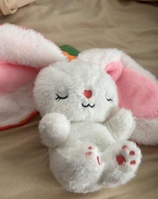 This little bunny breathes with you, softly lights up your space, and plays soothing sounds. Just hug it and let the calm take over.